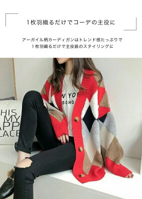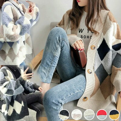 楽天1位★ 在庫限りの早い者勝ち★カーディガン ニットカーデ ニット ボア セーター Vネック アーガイル 着回し ゆったり 可愛い 流行 カジュアル きれいめ 秋 冬 韓国ファッション レディース【outer1003-1】【予約販売:6/11~6/20発送予定】