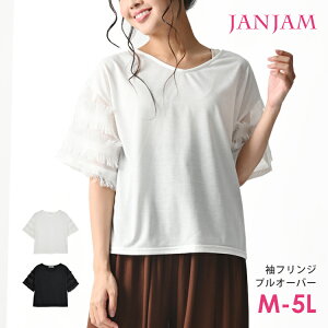 大きいサイズ レディース 半袖トップス 5分袖トップス 半袖カットソー 半袖プルオーバー 春服 夏服 フリンジ袖 5分袖 ティアードフリンジ Vネック チュールレース 無地 シンプル 大人 カジュアル ナチュラル きれいめ 着こなし コーデ おしゃれ かわいい 30代 40代 50代 春 夏 黒 白 M LL 3L 4L 5L 9号 13号 15号 17号 19号 pm-ss-tp0245ティアード状になったフリンジの袖が存在感抜群のプルオーバー。