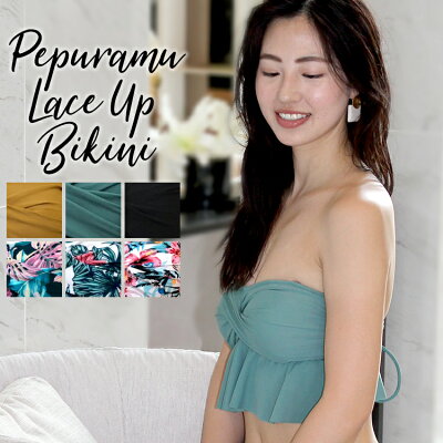 ビキニ単品 ≪ 送料無料≫ トレンドのふわふわペプラム&バックレースアップ 気になるボディラインを隠してくれる★