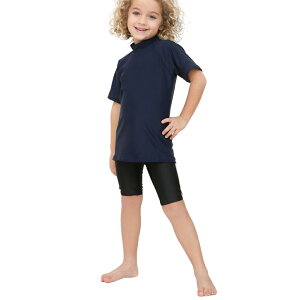 プライベートで海やプール、また、小学校、中学校、保育所、保育園でも使える紺色の半袖ラッシュガード単品です。