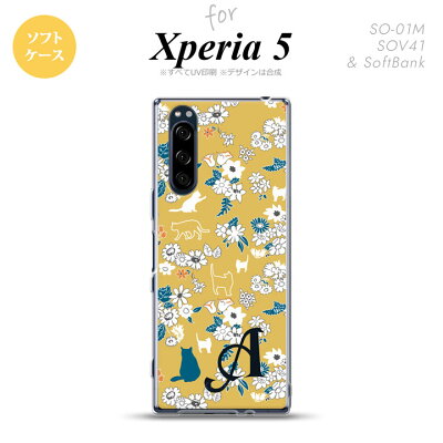 Xperia5 SO-01M SOV41 スマホケース ソフトケース 猫 花 黄 イニシャル メンズ レディース キッズ ストラップホール おしゃれ かわいい かっこいい nk-xp5-tp1721i