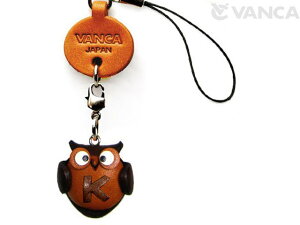 イニシャル動物 ふくろう K 携帯ストラップ【レザー 本革 VANCA バンカクラフト革物語 国産 ハンドメイド 贈り物 即納】