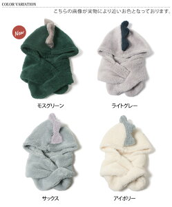 ■素材:ポリエステル100% ■カラー:ライトグレー(薄い灰色)サックス(くすみ感のあるやや濃い水色)アイボリー(黄みがかった白)モスグリーン(暗めの濃い緑)恐竜トサカ フードマフラー キッズ 子供 子ども 女の子 男の子 シープタッチ ボア 裏起毛 あったか 暖かい 防寒対策 もこもこ ふわふわ フード付き ネックウォーマー ストール マフラー 帽子 動物