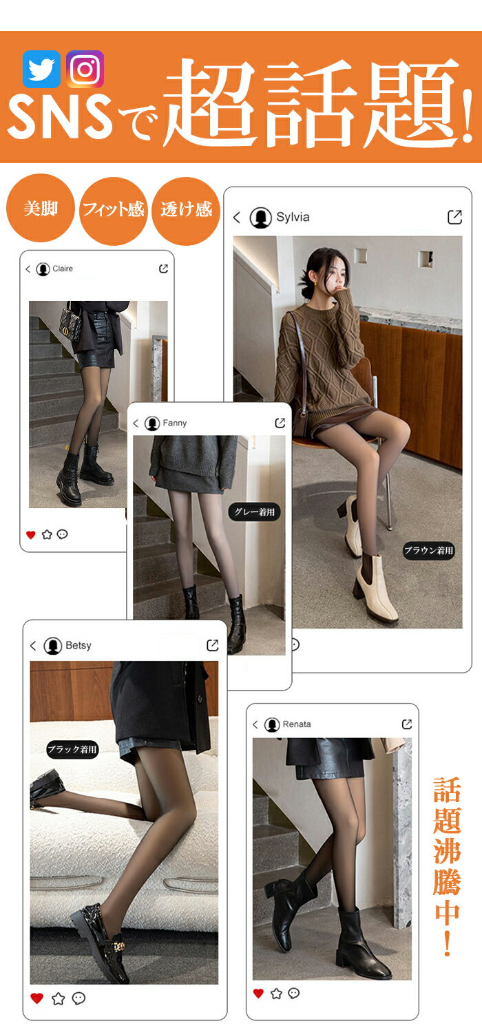 レビューで990円2枚GET! 80/600/1200デニール 肌色 登場 フェイクタイツ タイツ 防寒 着圧 80デニール ストッキング 美脚見え 細見え 傷跡見えない ストッキング風 裏起毛 フェイクタイツ 裏起毛パンツ プチプラファッション オークル ブラック ブラウン グレー